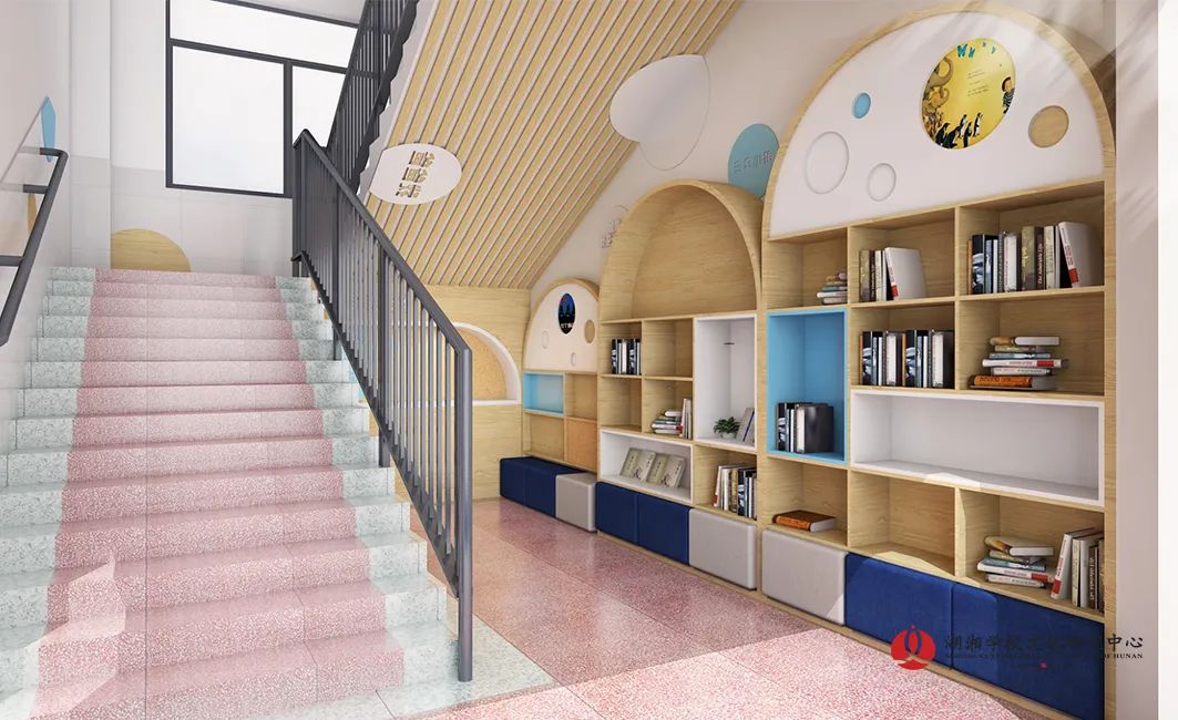 以全面发展为引领,学习乐园设计布局结合学校“健、美、力、行”校训,利用楼道、长廊空间,营建运动、艺术、科技、实践等主题理念中心,期冀多样化的教育空间为学生带来开放的视野、全面的发展,实现“芙蓉国里千枝尽秀”的独特美景。