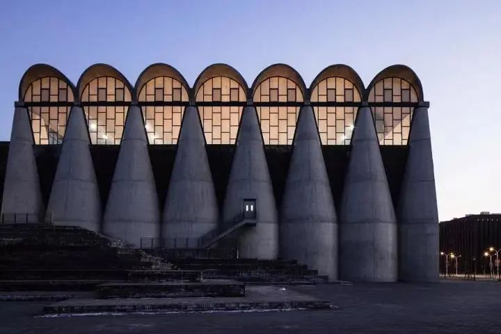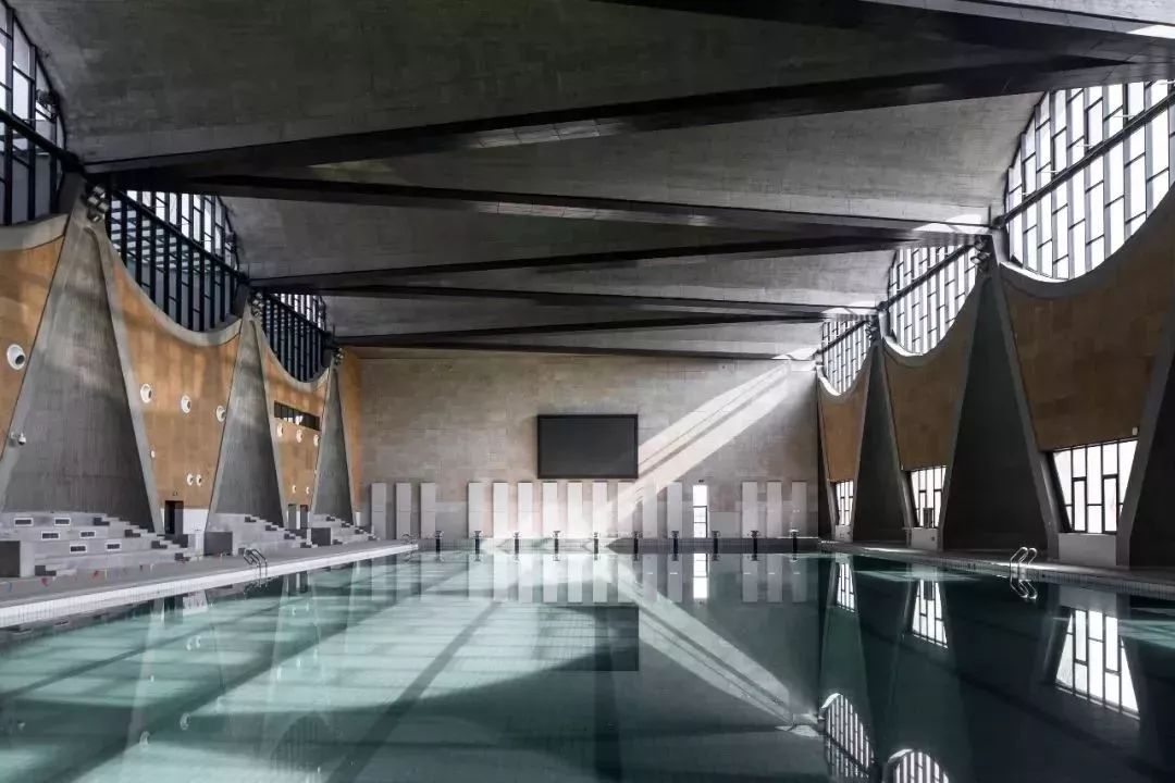运动场地空间的屋顶和外墙,使用了一系列直纹曲面、筒拱及锥形曲面的钢筋混凝土结构,带来大跨度空间和高侧窗采光,在内明露木模混凝土筑造肌理,在外形成沉静而多变的建筑轮廓。达到建筑结构、空间与形式完美统一。