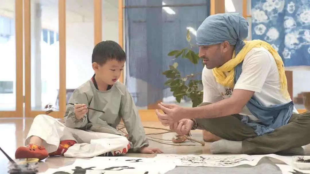 这些艺术家在幼儿园办展期间,不需要专门给孩子们上课,只需要呆在幼儿园专心致志地策划和布置自己的展览,孩子们在自由玩耍的时候,会看到他们沉浸其中的状态,好奇的孩子会自然而然过去与这些艺术家交流互动。当展览布置完毕时,那些不同的、充满个性的艺术作品,其实也在默默影响着孩子。在学而,他们认为这种非刻意的“熏习”,是孩子重要的学习方式。